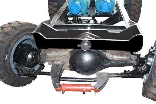 最后車(chē)橋的穩定性設計也是一個(gè)參考因素,車(chē)橋分為固定式與懸掛式,由于扒渣機施工的路面很差,顛簸較大,固定式?jīng)]有緩沖的效果,容易造成車(chē)橋半軸或者其他零部件的損壞;而采用懸掛式設計,在路面不好的時(shí)候,能起到很好的緩沖作用,減少了車(chē)橋半軸和其他零部件的損壞。